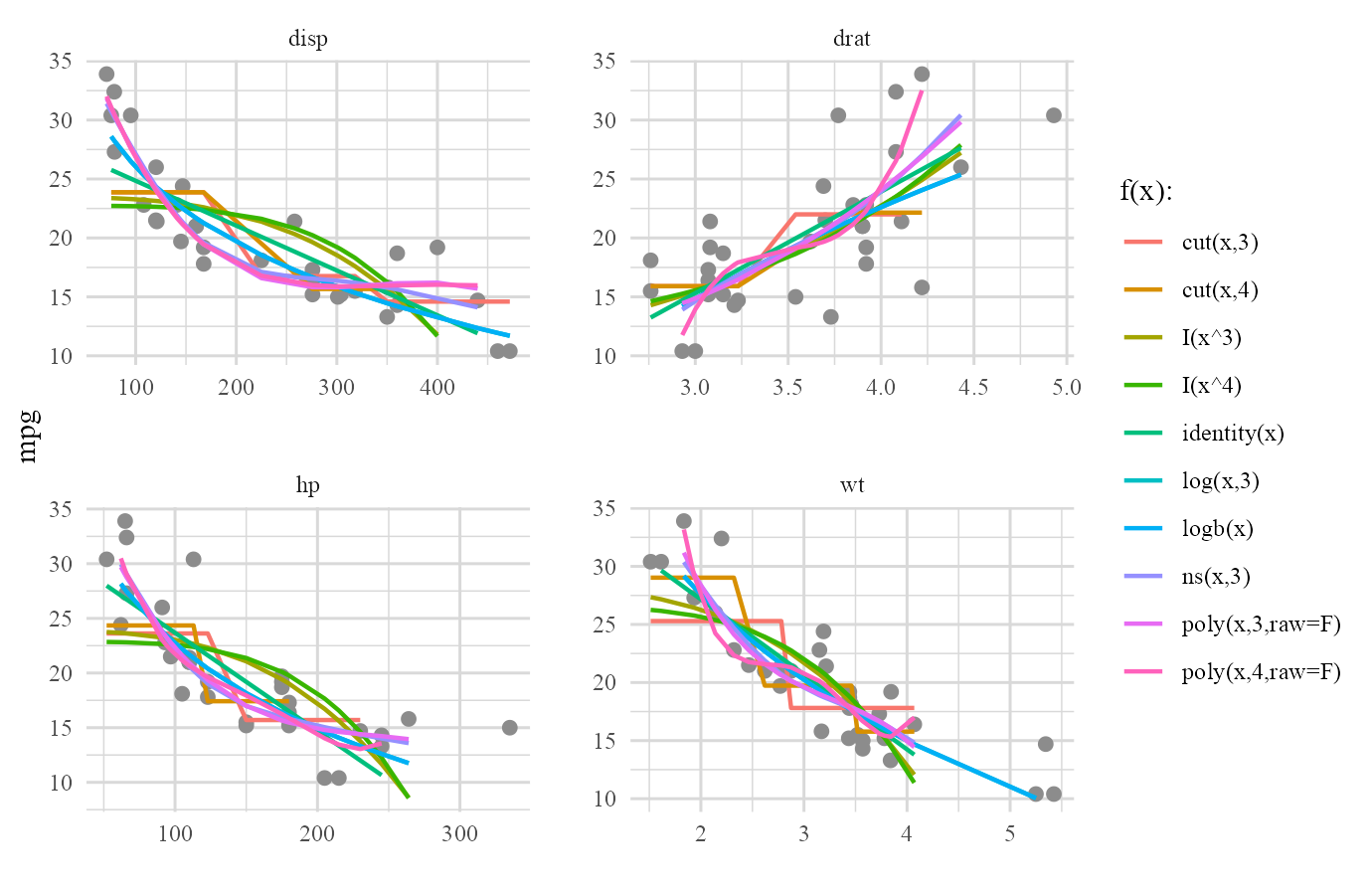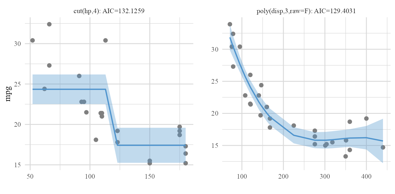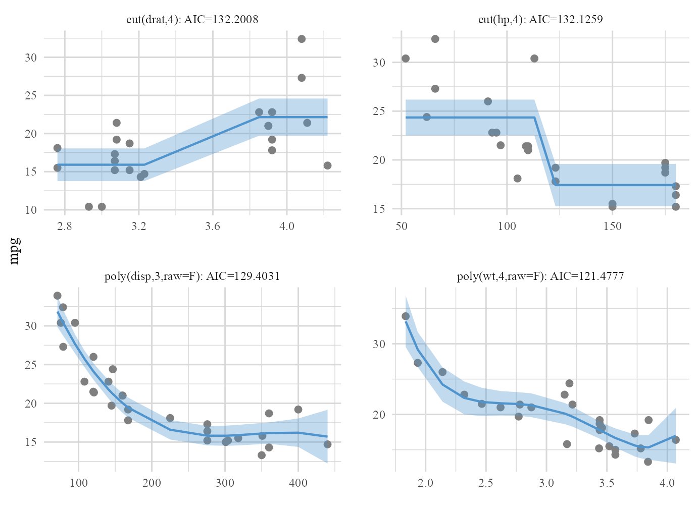 #> [1] "poly(disp,3,raw=F)" "cut(drat,4)" "cut(hp,4)"